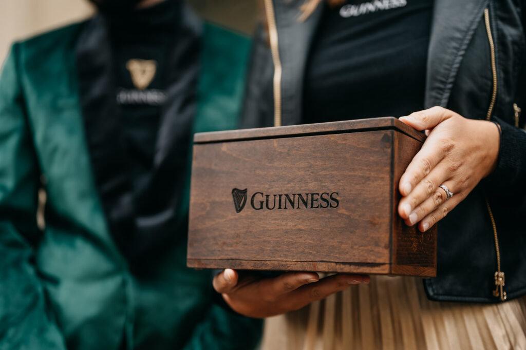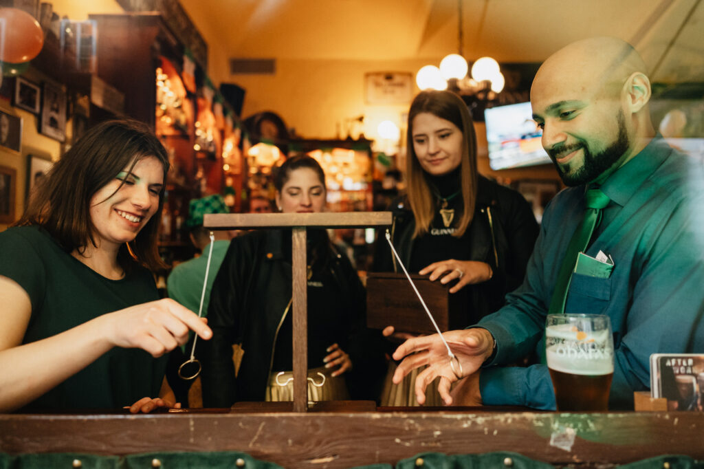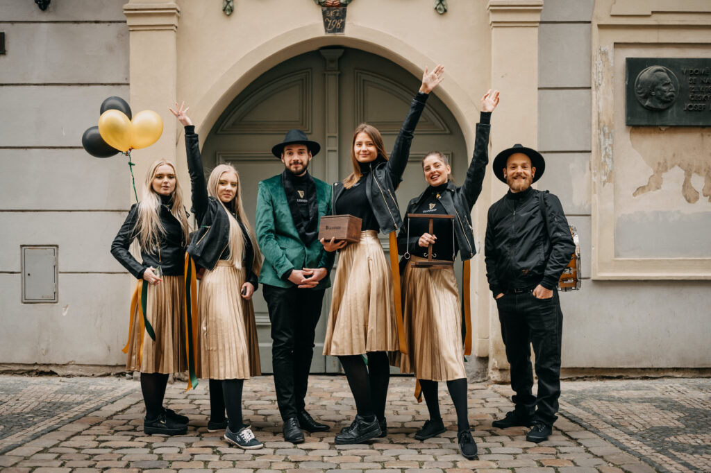Celebration in green. One day a year we can be green from head to toe. But why not give green style and shine? The reflection of sequins reminiscent of bubbles in the foam and fireflies in the forest. Colors that come from the Guinness visual itself. A promo activity that was supposed to attract attention already during the day and lure passers-by to the treasure hunt. Using the lottery tickets distributed by the hostesses in the center of Prague, you could get to several Irish pubs, where our team brought music, games and beer. We took the whole concept in a relaxed way, came up with an unconventional game and let the visitors compete with each other for the best that the pubs had to offer. Guinness beer.