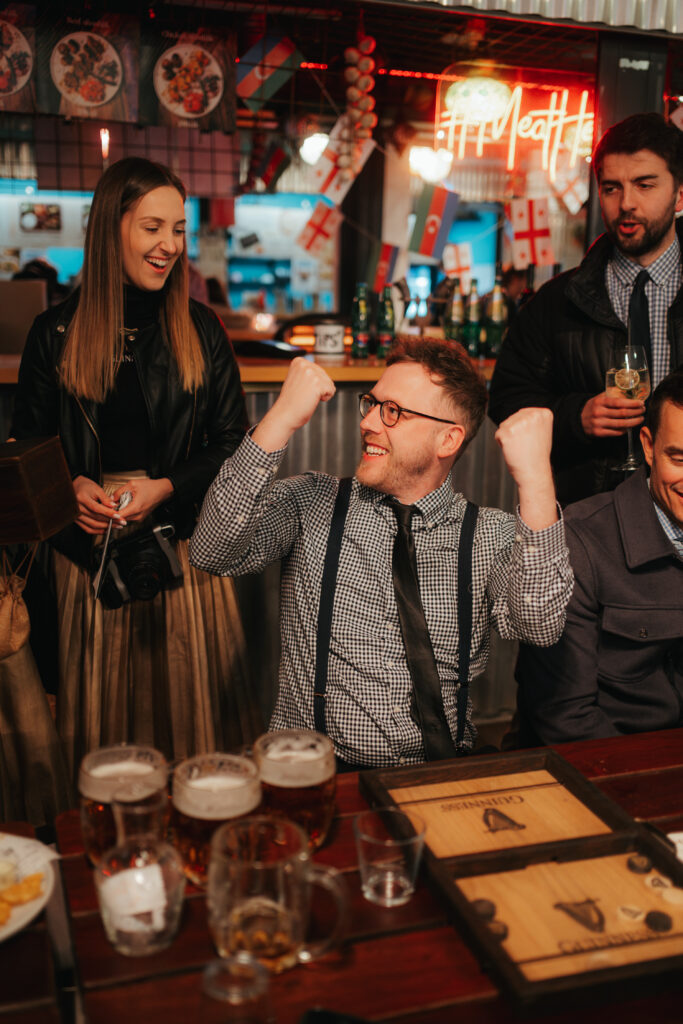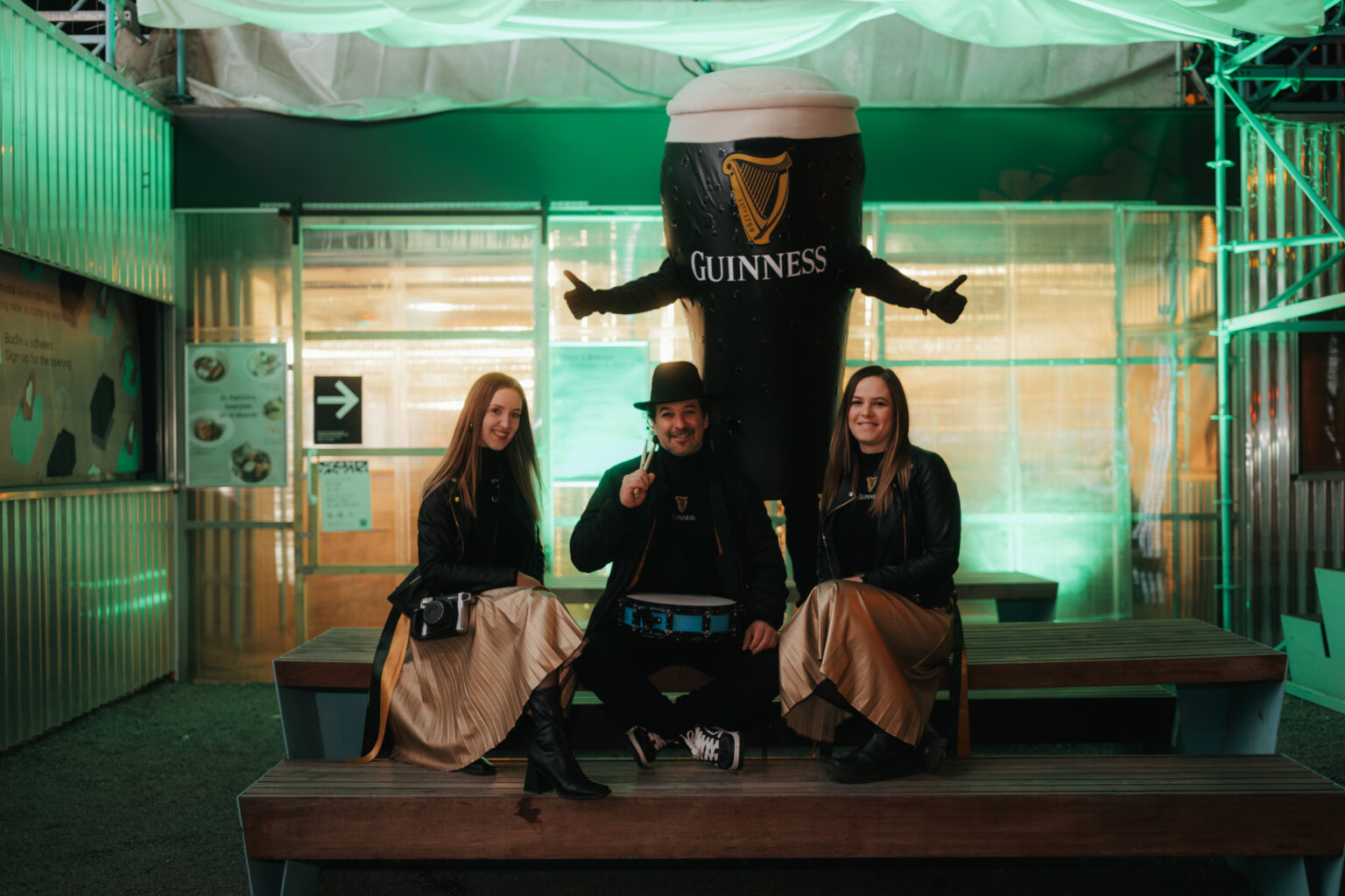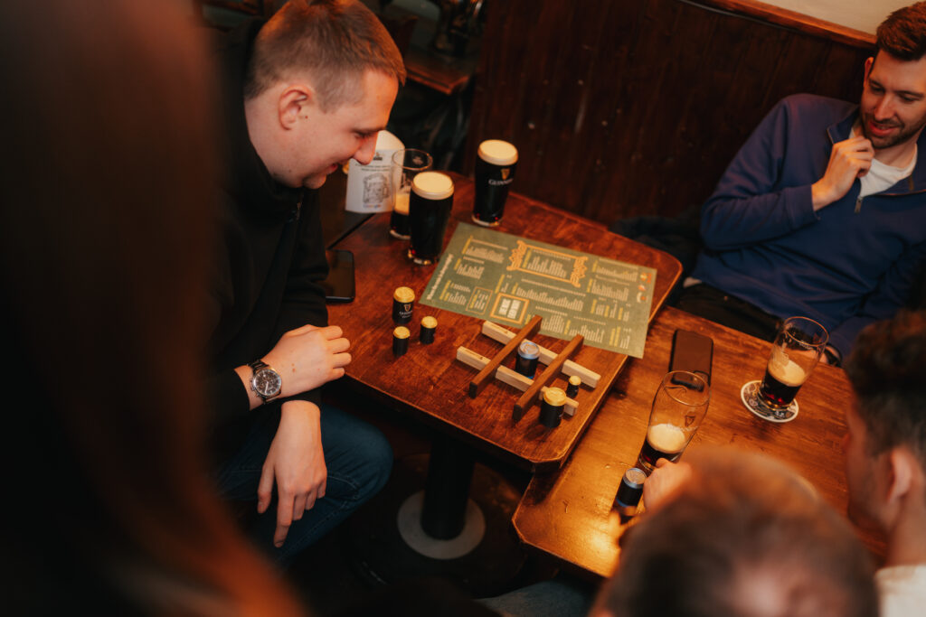 Zatímco náš bubeník přinášel do podniků hudbu a tanec, hostesky nabízely návštěvníkům možnost zahrát si deskové hry. Ať už jste vyhráli piškvorky, kluster, hook and ring nebo pukec, vítěz si mohl vytáhnout žeton. Za ten získal buď pěkně vychlazený Guiness, nebo pěkný tematický dárek. A jako každý rok se velké přízni všech přítomných těšil náš fotogenický Guiness maskot.