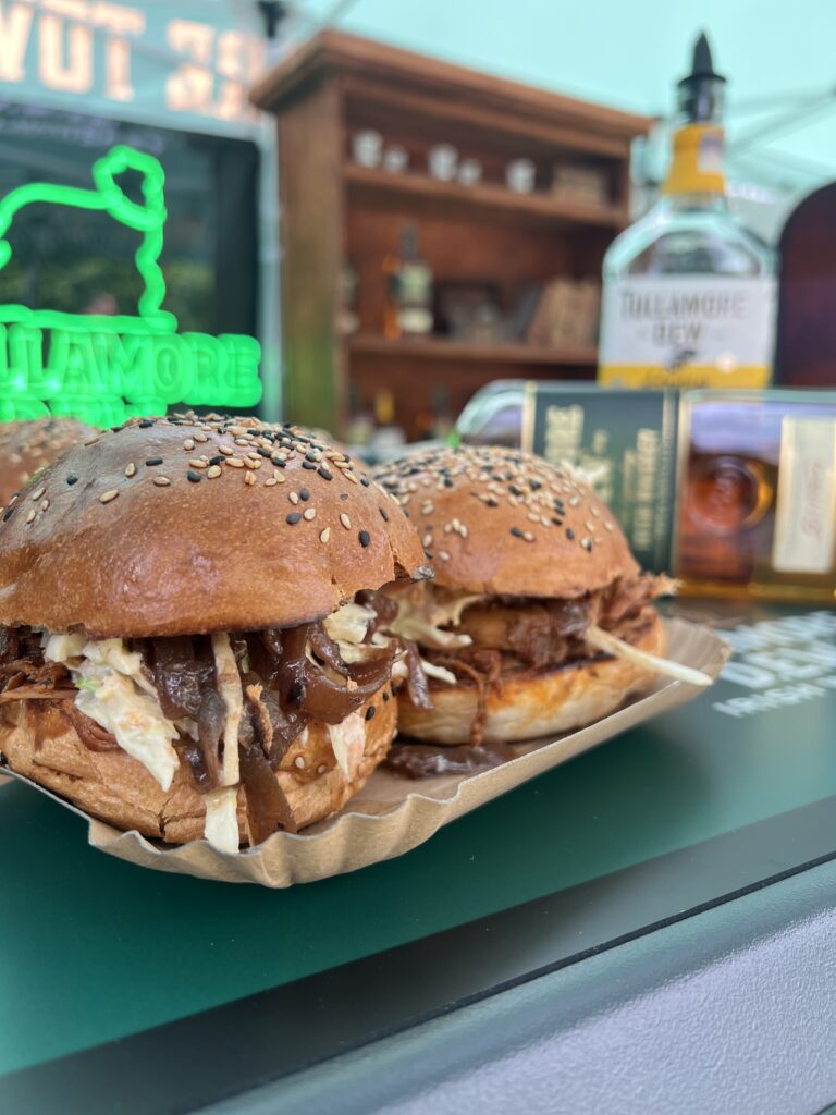 Kromě irské hudby k poslechu a irských vlkodavů k focení i mazlení čekala na návštěvníky našeho stánku i soutěž. Za čtyři razítka na kartičku (a tedy čtyři drinky) bylo možné získat klobouk, placatku, tričko, ponožky, nebo herní kostky. A aby toho nebylo málo, spojili jsme se také se dvěma oblíbenými grill bandy – BBQ boys a Eat & Fun catering, aby pro návštěvníky vytvořili jídla za pomoci Tullamore D.E.W. Original nebo Honey.